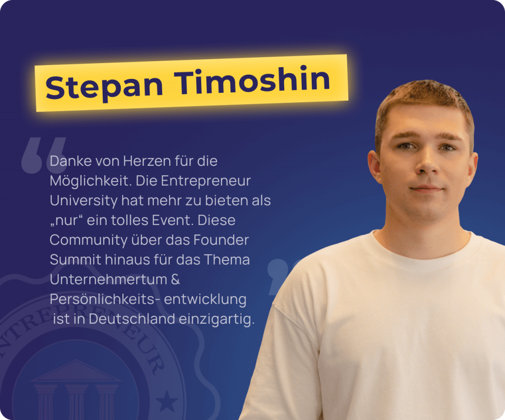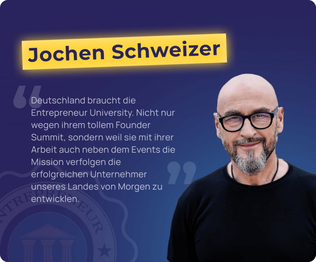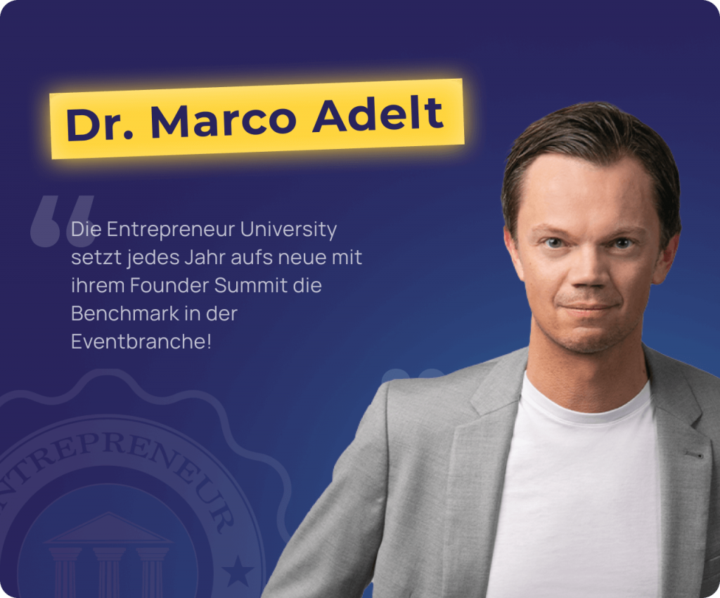 Werde jetzt Partner der Entrepreneur University & des Founder Summits und öffne die Türen zu Deutschlands größtem Netzwerk aus Selbständigen, Unternehmern & ambitionierten Talenten!