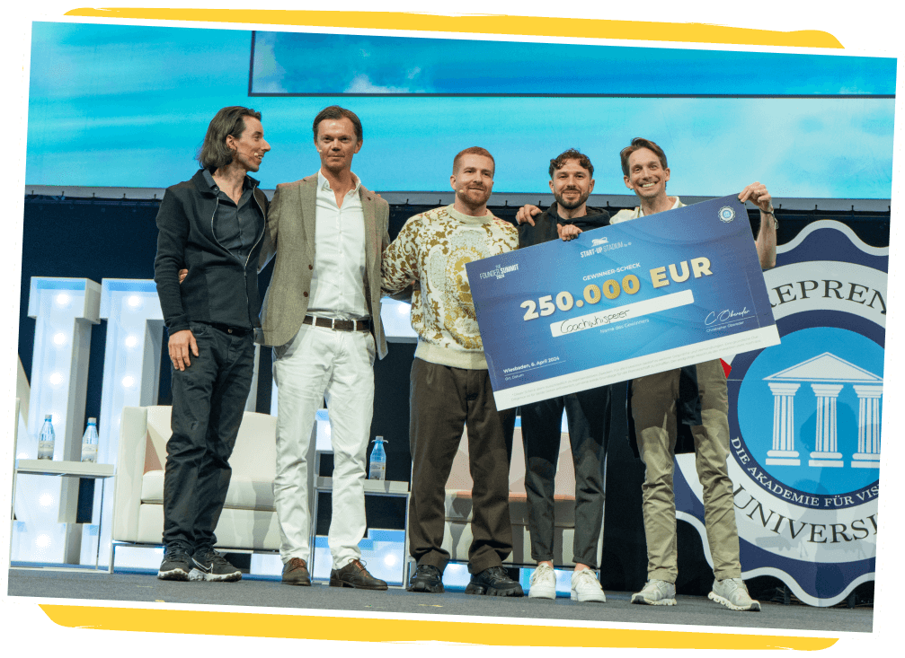 Erlebe das einzigartige Live-Pitch-Format, bei dem Gründer vor 8.000 begeisterten Zuschauern ihre Ideen präsentieren. Das Publikum entscheidet live, wer die beeindruckende Investmentsumme von 250.000 € gewinnt! Wenn du ein Startup hast, bietet sich dir als Partner die exklusive Chance, Teil dieser Pitch-Runde zu werden und deine Vision vor einem riesigen Publikum und potenziellen Investoren zu präsentieren. Nutze diese Gelegenheit und bring dein Startup auf die große Bühne!